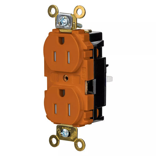 Hubbell HBL5262STOTR, EdgeConnect Extra Heavy Duty Max Duplex Receptacles, Tamper Resistant, Screwless Terminal, Back Wired, 15A 125V, 5-15R, 2-Pole 3-Wire Grounding, Orange