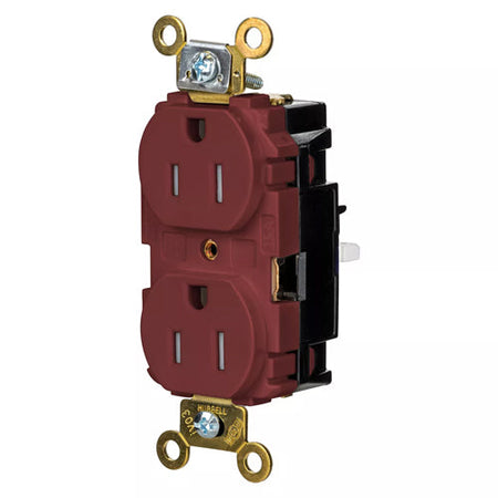 Hubbell HBL5262STRTR, EdgeConnect Extra Heavy Duty Max Duplex Receptacles, Tamper Resistant, Screwless Terminal, Back Wired, 15A 125V, 5-15R, 2-Pole 3-Wire Grounding, Red