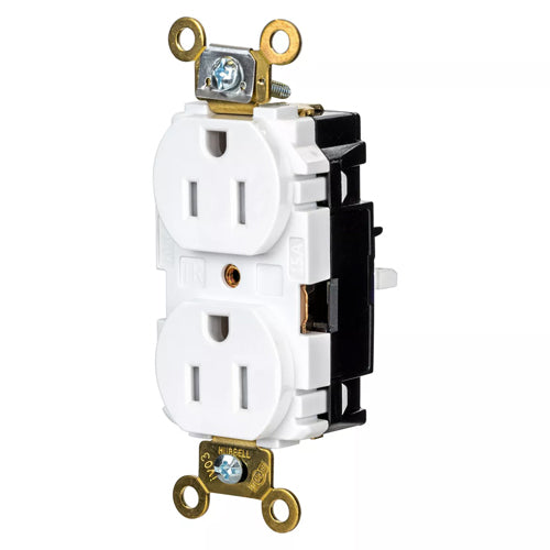 Hubbell HBL5262STWTR, EdgeConnect Extra Heavy Duty Max Duplex Receptacles, Tamper Resistant, Screwless Terminal, Back Wired, 15A 125V, 5-15R, 2-Pole 3-Wire Grounding, White