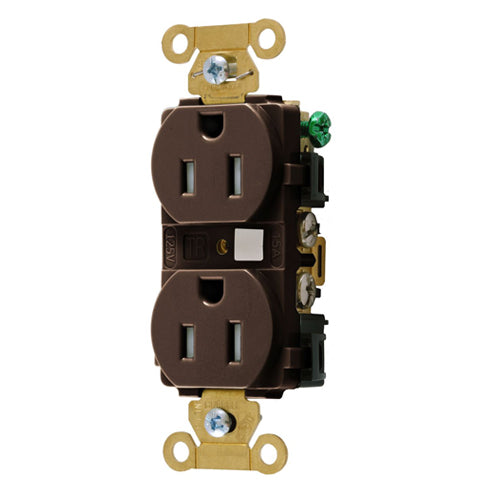 Hubbell HBL5262TR, Extra Heavy Duty Max Industrial Grade Duplex Receptacles, Tamper Resistant, Back and Side Wired, 15A 125V, 5-15R, 2-Pole 3-Wire Grounding, Brown