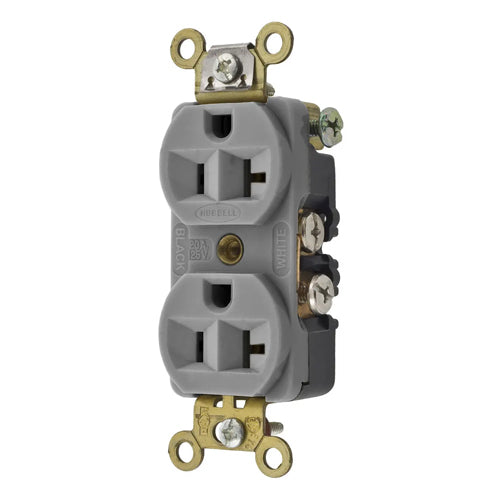 Hubbell HBL5342GY, Extra Heavy Duty Max Compact Duplex Receptacles, Nylon Face, Side Wired only, 20A 125V, 5-20R, 2-Pole 3-Wire Grounding, Gray