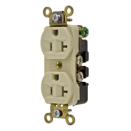 Hubbell HBL5352I, Extra Heavy Duty Max Compact Duplex Receptacles, Industrial Grade, Back and Side Wired, 20A 125V, 5-20R, 2-Pole 3-Wire Grounding, Ivory