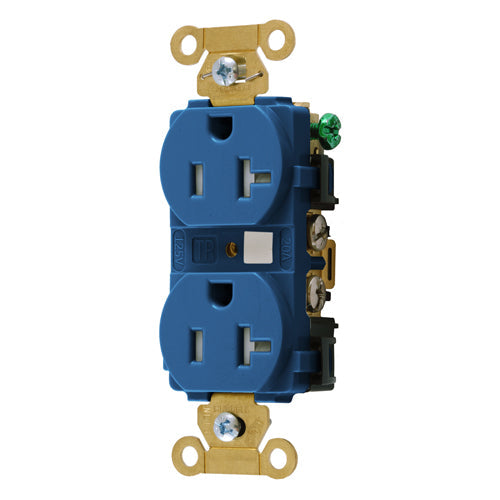 Hubbell HBL5362BLTR, Extra Heavy Duty Max Industrial Grade Duplex Receptacles, Tamper Resistant, Back and Side Wired, 20A 125V, 5-20R, 2-Pole 3-Wire Grounding, Blue