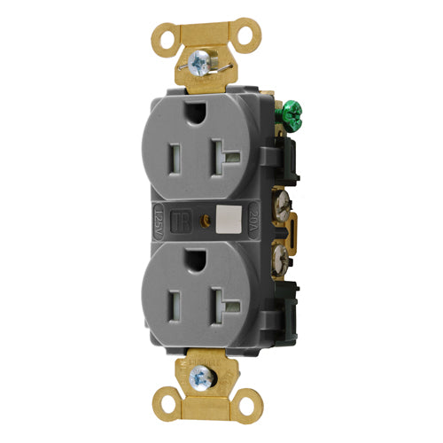 Hubbell HBL5362GYTR, Extra Heavy Duty Max Industrial Grade Duplex Receptacles, Tamper Resistant, Back and Side Wired, 20A 125V, 5-20R, 2-Pole 3-Wire Grounding, Gray
