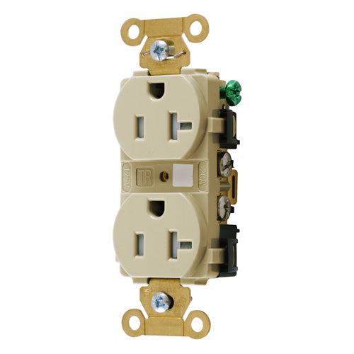 Hubbell HBL5362ITR, Extra Heavy Duty Max Industrial Grade Duplex Receptacles, Tamper Resistant, Back and Side Wired, 20A 125V, 5-20R, 2-Pole 3-Wire Grounding, Ivory