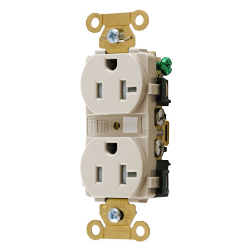 Hubbell HBL5362LATR, Extra Heavy Duty Max Industrial Grade Duplex Receptacles, Tamper Resistant, Back and Side Wired, 20A 125V, 5-20R, 2-Pole 3-Wire Grounding, Light Almond