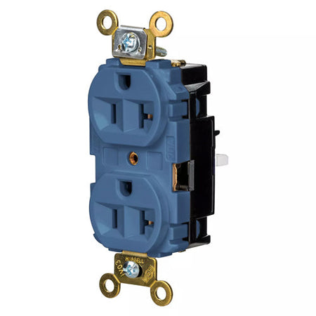 Hubbell HBL5362STBL, EdgeConnect Extra Heavy Duty Max Duplex Receptacles, Screwless Terminal, Back Wired, 20A 125V, 5-20R, 2-Pole 3-Wire Grounding, Blue