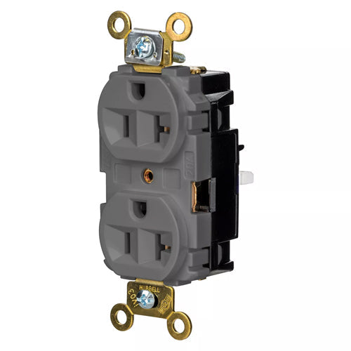 Hubbell HBL5362STGY, EdgeConnect Extra Heavy Duty Max Duplex Receptacles, Screwless Terminal, Back Wired, 20A 125V, 5-20R, 2-Pole 3-Wire Grounding, Gray