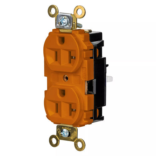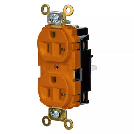 Hubbell HBL5362STO, EdgeConnect Extra Heavy Duty Max Duplex Receptacles, Screwless Terminal, Back Wired, 20A 125V, 5-20R, 2-Pole 3-Wire Grounding, Orange