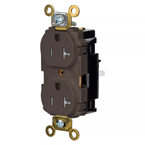 Hubbell HBL5362STTR, EdgeConnect Extra Heavy Duty Max Duplex Receptacles, Tamper Resistant, Screwless Terminal, Back Wired, 20A 125V, 5-20R, 2-Pole 3-Wire Grounding, Brown