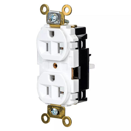 Hubbell HBL5362STW, EdgeConnect Extra Heavy Duty Max Duplex Receptacles, Screwless Terminal, Back Wired, 20A 125V, 5-20R, 2-Pole 3-Wire Grounding, White