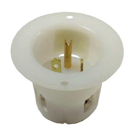 Hubbell HBL5378C, Flanged Male Inlet, Nylon Casing, Back Wired, 20A 125V, 5-20P, 2-Pole 3-Wire Grounding, White
