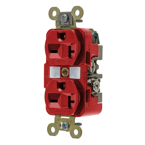 Hubbell HBL5462R, Extra Heavy Duty Max Duplex Receptacles, Nylon Face, Back and Side Wired, 20A 250V, 6-20R, 2-Pole 3-Wire Grounding, Red