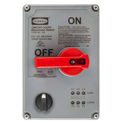 Hubbell HBLDS10RCPJ, Non-Metallic Replacement Cover with Jog Switch and LED Indicators for 100A Disconnect Switch