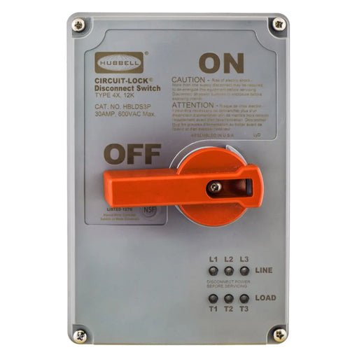 Hubbell HBLDS3RCP, Non-Metallic Replacement Cover with LED Indicators for 30A Disconnect Switch