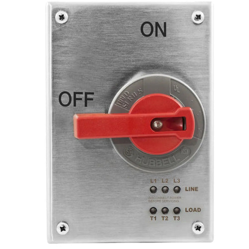 Hubbell HBLDS3SSRCP, Stainless Steel Replacement Cover with LED Indicators for 30A Square Top Disconnect Switch