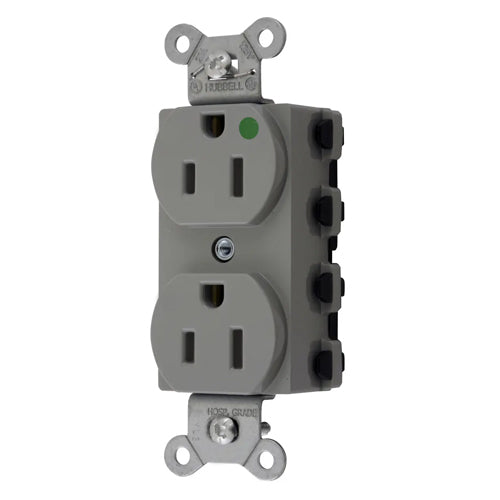 Hubbell SNAP8200GYNA, SNAPConnect Extra Heavy Duty Duplex Receptacles, Hospital Grade, Smooth Nylon Face, 15A 125V, 5-15R, 2-Pole 3-Wire Grounding, Gray