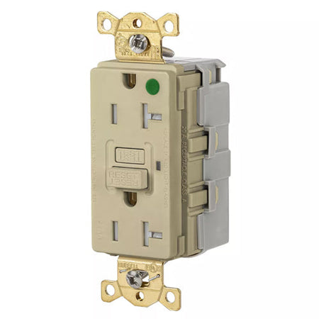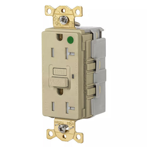 Hubbell SNAPGFTW83I, SNAPConnect GFCI Hospital Grade Receptacles, LED Indicator, Self Test, Tamper and Weather Resistant, 20A 125V, 5-20R, 2-Pole 3-Wire Grounding, Ivory