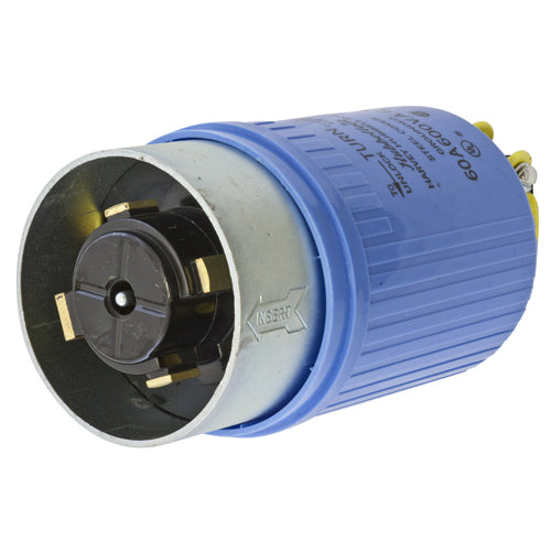 Hubbellock® HBL26519, Male Plug, Black Phenolic Interior with Blue Thermoplastic Sleeve and Steel Housing, 60A 600VAC, 4-Pole 5-Wire Grounding