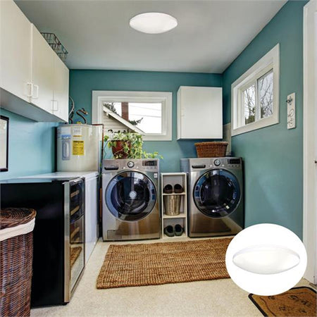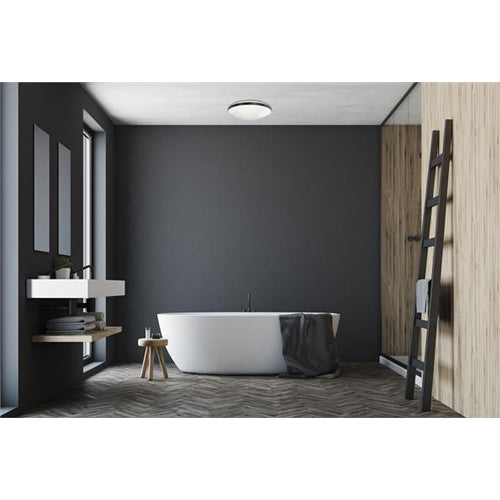 The round low profile LED Flush Mount features an acrylic diffuser with a sleek, compact design with a touch of modern elegance. A white and black trim ring included to interchange the design to compliment any decor. An integrated 5CCT switch (2700K/3000K/4000K/5000K) allows the end user to fine-tune the feel of their space to insure the right amount of light.