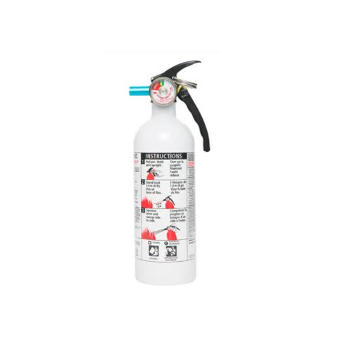 Suitable for use on Class B (liquids & gases) and Class C fires (energized electrical equipment). The 468031MTL Home Series white fire extinguisher comes equipped with a tough metal handle and is fitted with a pressure gauge that provides at-a-glance status. “BC” rated fire extinguishers won’t fuse with and damage metal surfaces, making clean-up easier and less costly.