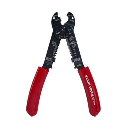 This Multi Tool performs 6 different functions with the same tool. It gauges, cuts and strips wire, measures and shears machine screws and crimps insulated terminals and connectors. Use the threaded holes to easily measure the size of a machine screw and cut it if needed. The plastic-covered handles are cushioned for added comfort.This cutting, stripping, and crimping tool cuts and strips 8-22 AWG solid and 10-26 AWG stranded wire with built-in, knife-type wire cutter.