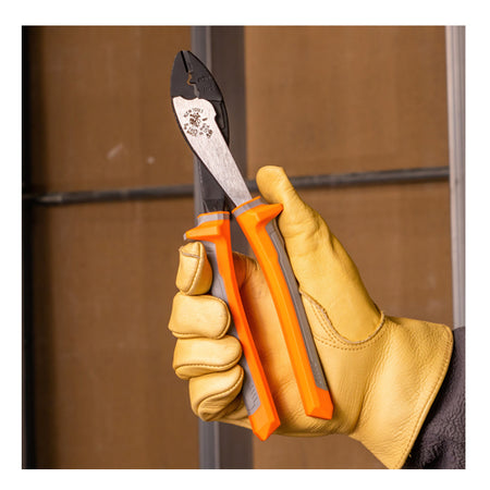 The Klein Tools Insulated Crimping/Cutting Tool crimps wire from 10 to 22 AWG. This crimper/cutter features a tapered nose for working in confined spaces. Additionally, it features bright orange outer coating on the handles that is flame retardant and impact resistant.