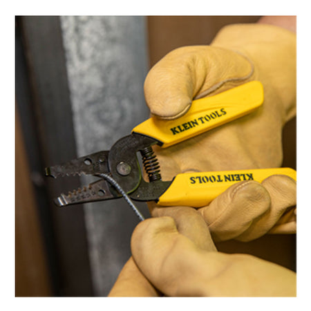 Complete electrical wiring tasks quicker by stripping 2 wires at a time with the Klein Tools 6-1/4-Inch Dual-Wire Stripper/Cutter. This tool is designed for use with 10-14 AWG solid wire. Its precision-ground stripping holes cleanly cut wire and aid in easy removal of insulation.