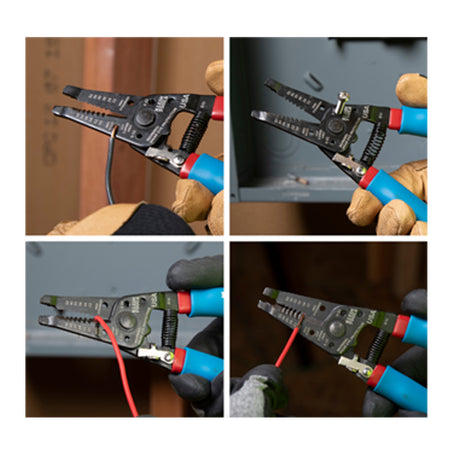 Klein's Wire Stripper/Cutter features a coil spring for fast self-opening action. The strong-gripping serrated nose allows for easy bending, shaping and pulling of wire. The Wire Stripper/Cutter has precision-ground stripping holes and screw-shearing holes. For use with 20-30 AWG Solid and 22-32 Stranded wire.