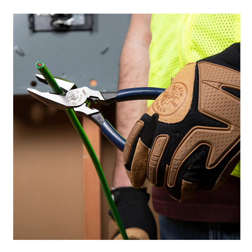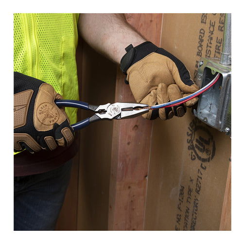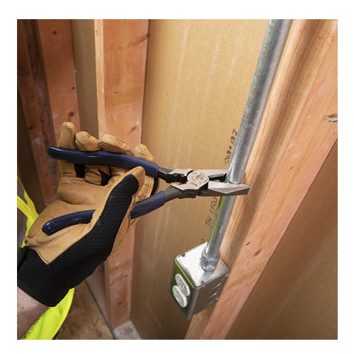 These Klein Tools Universal Combination Pliers have a crimping die behind the hinge for better leverage of non-insulated connectors, lugs, and terminals. They also have tons of grip from the toothed pipe grip, and a high-leverage design, with the rivet closer to the cutting edge for 40% greater cutting and gripping power than other pliers designs. The handform handles are tempered to help absorb the snap from cutting and they are dipped for comfort.