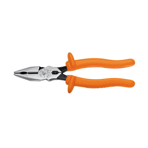 Be protected from up to 1,000 volts of electric current when working near energized sources with Klein's 8-Inch Insulated Universal Combination Pliers. These pliers offer flame-retardant handles, a toothed pipe grip and a high-leverage design, with the rivet closer to the cutting edge for 40% greater cutting and gripping power than other pliers designs. The durable, molded insulation meets or exceeds IEC 60900 and ASTM F1505 standards for insulated tools.