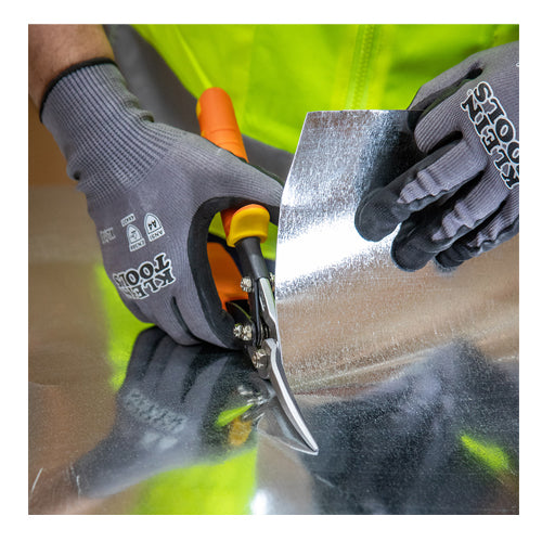 Cut and trim sheet metal more efficiently with the Klein Tools long-nose, straight cutting Aviation Snips. Snip blades are made of forged, heat-treated steel for superior strength and durability. The spring-action lock allows opening of tool with one handed operation. Aviation snips are color-coded and feature comfortable contoured grips.
