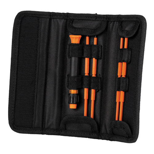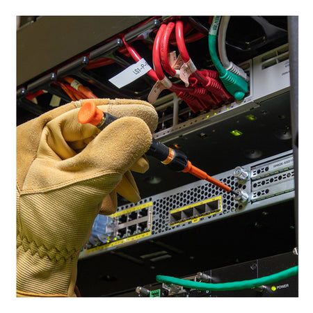 Klein Tools' Insulated Interchangeable blades contain a bright orange coating of insulation that protects from electrical shock, as well as being flame and impact resistant. When the blades are used with the Klein Tools' insulated handle, the complete tool exceeds the ASTM F1505-2021 standards for insulated tools, and are clearly marked with the official 1000V rating symbol. Replacement blades for Klein Tools' Insulated Interchangeable Screwdrivers (Cat. Nos. 32854INSR and 32581INS).