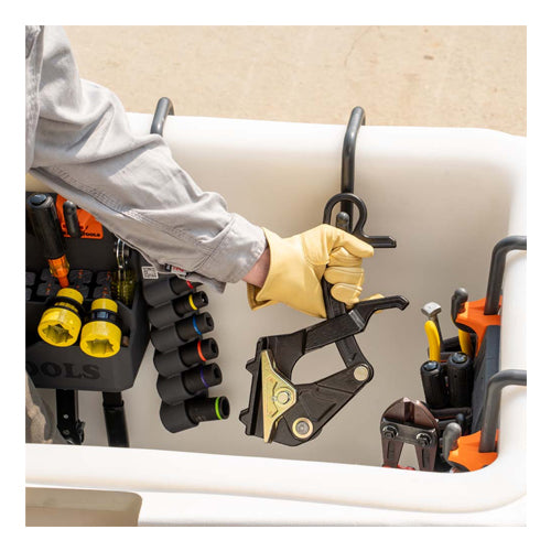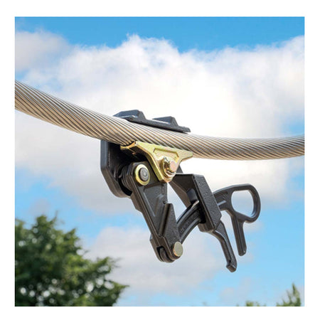 The Klein Tools Wide Range Transmission Grip was specifically designed to securely pull ACSR, AAC and bare copper cables. Holds a wide range of cable from 0.68-Inch to 1.42-Inch (17.3 mm to 36.1 mm). This grip has a maximum safe load of 12,000-Pound (5443 kg).