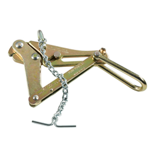 The Klein Tools 1659-5AT Chicago Grip is similar to a Bell-System type B Strand Puller. It is designed to pull 1/4-Inch figure-8 telephone cable. Plus, it is equipped with a chain, toggle and shackle to keep the grip from falling off the cable. All Klein grips are manufactured from custom drop-forged steel that is machined and heat treated for excellent durability. Each grip is individually hand inspected and actuated for proper function. Grips are also rigorously tested and pulled to rated load to ensure the highest quality and reliability.