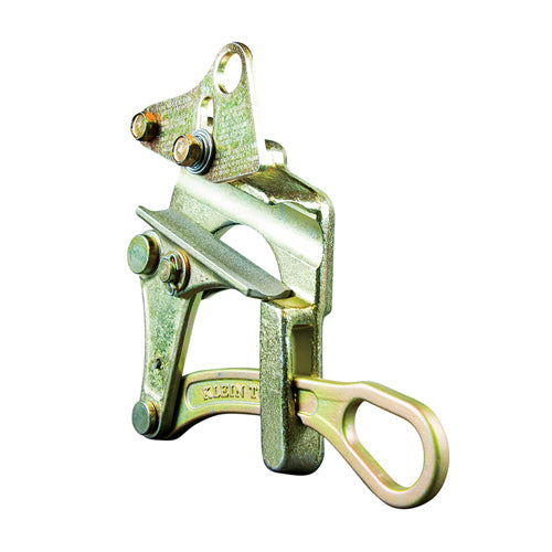 This parallel jaw grip was specifically designed to securely pull slippery HDPE-coated cable or tree wire. The innovative high-traction surface grips the cable without damaging the outer jacket. The tough carbide grit technology withstands even the harshest jobsite conditions. The grip is spring-loaded for one-handed operation and easy placement on the conductor.