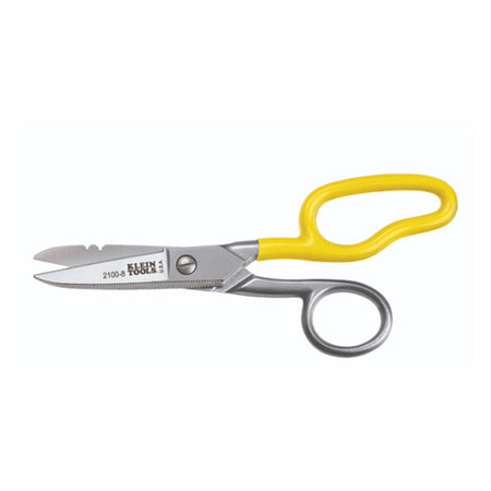 The Klein Tools 2100-8 Free-Fall Electrician Snips are crafted from stainless steel and feature wire stripping notches for 19 and 23 AWG wire, making them ideal for telecom, datacom, electrical, and heavy-duty applications. Their free-fall design, paired with an extended bottom handle, ensures smooth, effortless cuts and provides enhanced leverage with each use. Made in the USA to ensure unmatched quality and durability.