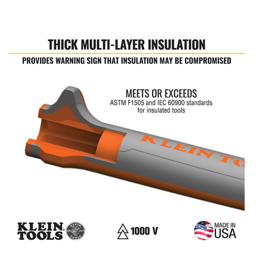 - Durable molded insulation meets or exceeds ASTM F1505-16(2021) and IEC 60900:2018 standards for insulated tools
