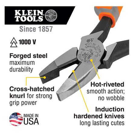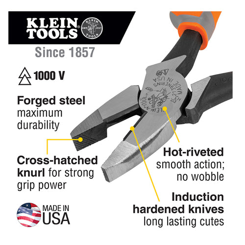 Klein Tools Electrician's Insulated High-Leverage Side-Cutting pliers are 1000V rated for safety on the job. The multi-color, sleek design with small thumb guards provides comfort for all day use, while also making for easy handling and storage.