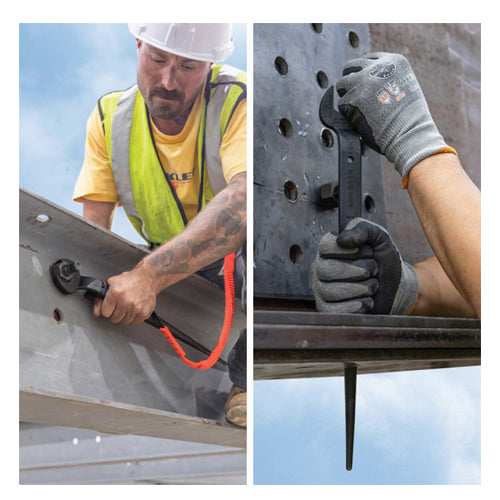 Forged from select alloy steel, Klein Tools' 1-5/8-Inch Nominal Opening Spud Wrench is designed to withstand high-leverage and heavy loads. For use with 1-Inch bolts and U.S. heavy nut types, the extra heavy-duty head area provides maximum strength and durability. Plus, the continuous taper of the handle makes it easy to line up bolt holes. Includes a built-in hole so tool can be tethered when working at height.