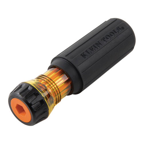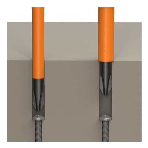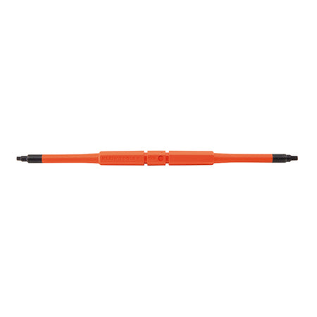 Klein Tools' Flip-Blade Insulated Screwdriver is two drivers in one tool. The auto-eject mechanism works with just a twist, allowing you to flip the #2 Square- to the #1 Square-end of the blade simply and easily. A bright orange coating of insulation protects from electrical shock, as well as being flame and impact resistant. Klein insulated tools exceed the ASTM F1505 standards for insulated tools, and are clearly marked with the official 1000-Volt rating symbol.