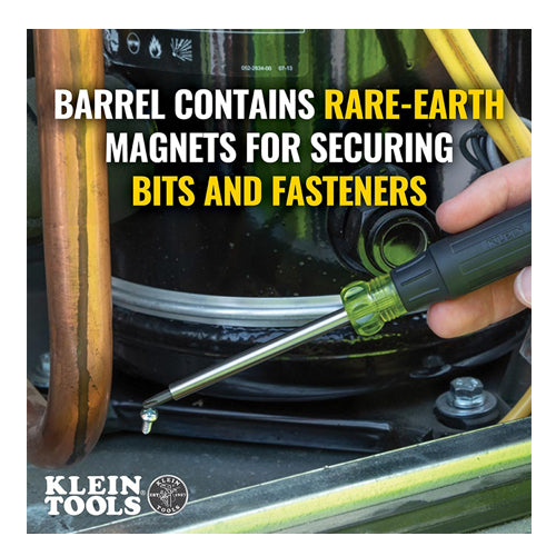 - Barrel contains powerful Rare-Earth magnets for securing bits and fasteners