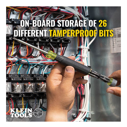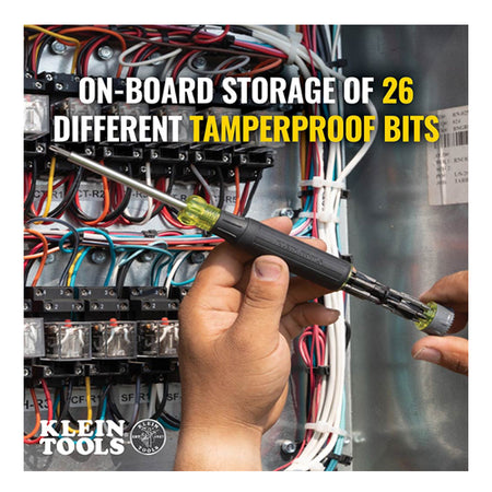 - Multi-Bit Screwdriver features convenient on-board storage of 26 different tamperproof bits and a 3.5 mm nut driver