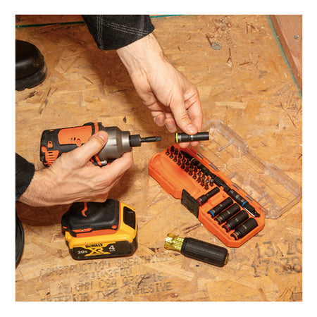 - 41-Piece Impact-Rated Screwdriver Set includes 26 standard bits, 6 deep impact sockets, 2 power nut drivers, 1/4-Inch bit holder, 1/4-Inch square impact adapter and handle