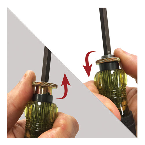 The Adjustable Length screwdriver features a shaft that adjusts within 4-Inch to 8-Inch (10 to 12 cm) for numerous length choices. The shaft is removable and reversible with a different tip on each end. Carry fewer tools with this versatile multi-length, multi-bit driver. A variety of blade types are also available.