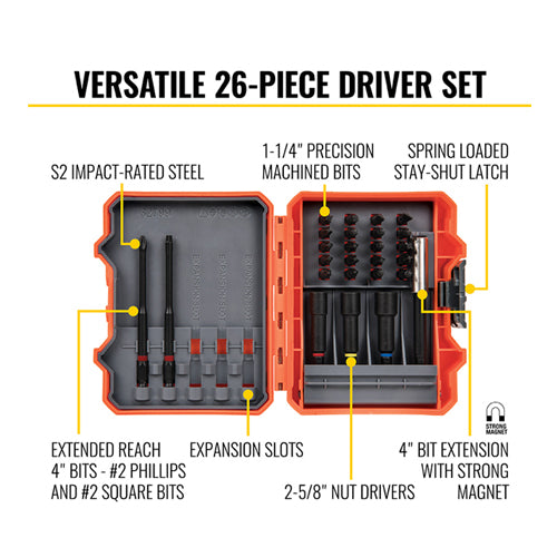 Klein Tools 32799, S2 Steel Pro Impact Power Bit Set, 26-Piece