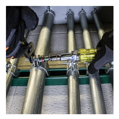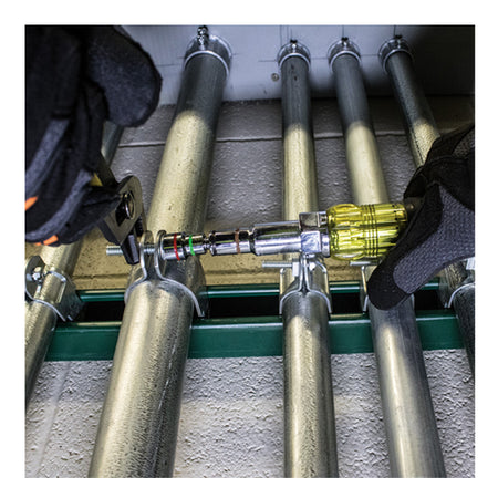 This Klein Screwdriver / Nut Driver is seven sizes in one tool. All sizes allow for easy, one-handed driving. The sizes are interchangeable ensuring you have the size you need when you need it. Color coded shaft ends make it easy to identify the size. Increase your productivity and lighten your load with this multi-nut driver.
