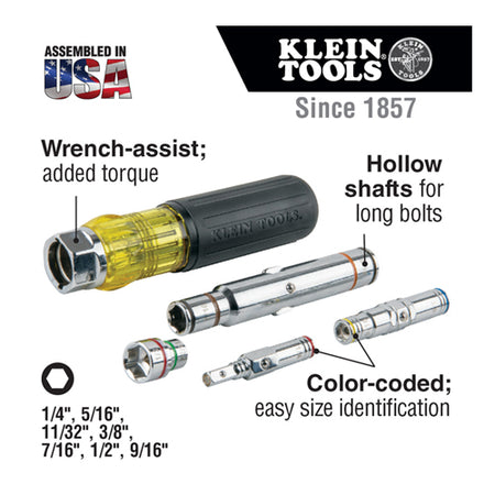 - This Klein Screwdriver / Nut Driver allows for one-handed driving, with seven sizes in one tool