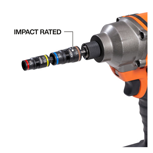 The 5-in-1 Impact Rated Flip Socket Set provides 4 hex nut driver sizes and a 1/4-Inch bit holding feature in one tool. The versatility provided allows for convenient swapping between common nut driving sizes and quickly attaches to an impact driver or our 1/4-Inch quick-connect handles (handles not included). Every component is impact rated, making it an essential tool for the toughest driving applications.