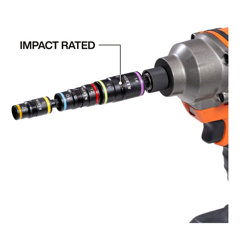 The 6-in-1 Impact-Rated Flip Socket Set provides 6 hex nut driver sizes in one tool. The versatility provided allows for convenient swapping between sizes and quickly attaches to an impact driver or our 1/4-Inch quick-connect handles (handles not included). Every component is impact rated, making it an essential tool for the toughest driving applications.